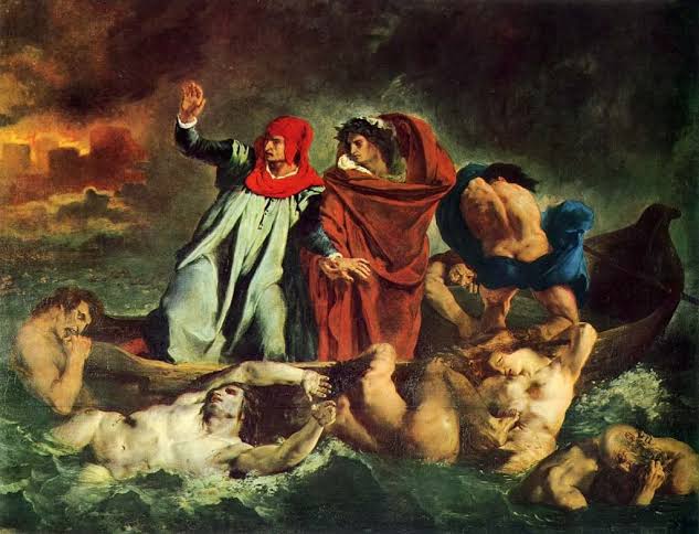 Traço do temperamento de Delacroix é a tela Barco de Dante tema da literatura Universal a obra jogava com o seguro ele permite um possível golpe de sorte alguém provável no caso de um tema contemporâneo como conflito turco grego que ele considerou pintar num primeiro momento.